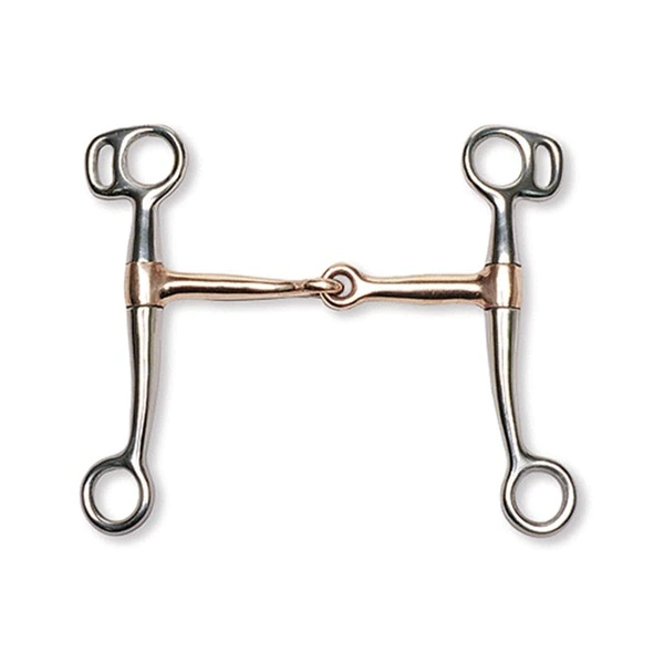 Get excellent results with this stainless steel Copper Mouth Tom Thumb Snaffle Bit with 5" jointed copper mouth and 6" cheeks.