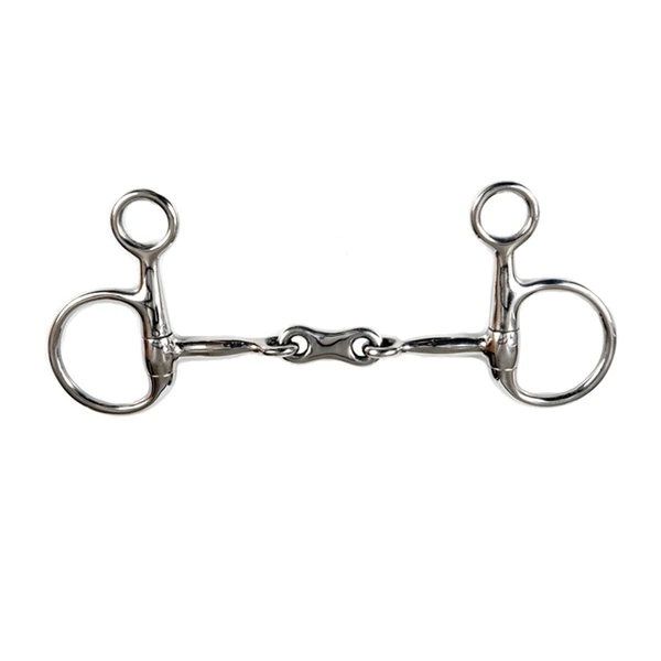 Stainless steel bit with round eyes, cheek length of 110mm, with 5-1/2" double jointed mouth and mouth thickness of 13mm. Exerts poll pressure with a leverage action caused by upper shanks.