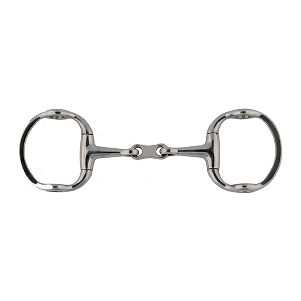 Stainless Steel Gag Bit with 75mm rings with holes and a double jointed French Link mouth with thickness of 14mm.