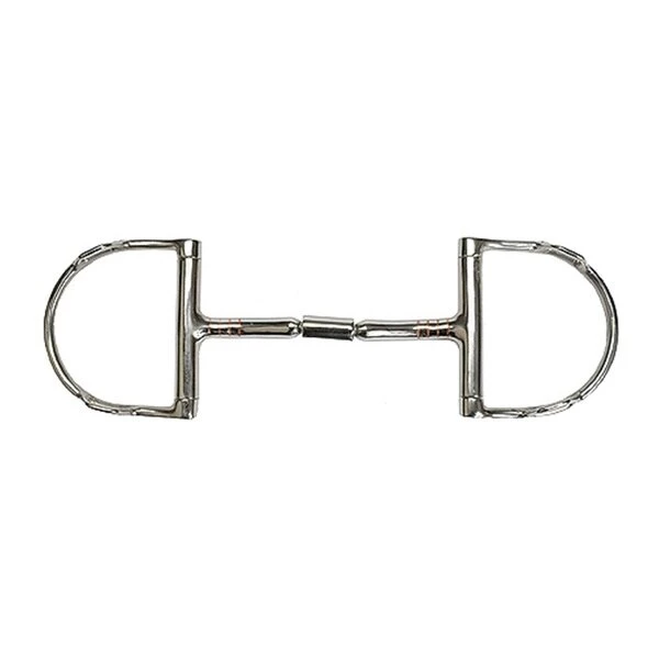Bit with copper inlaid mullen barrel jointed mouth and looped dee rings.