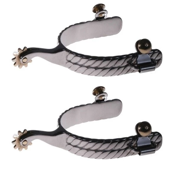 Spurs with 3/4" braided band, 1-3/4" shank, brass buttons and 1" 10 point brass rowel.