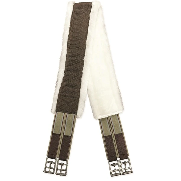 Brown nylon over white fleece Exercise Girth with elastic ends. Machine washable.