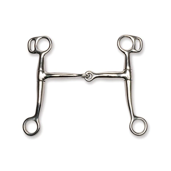 Stainless steel Tom Thumb Snaffle Bit with jointed mouth and 6" cheeks.