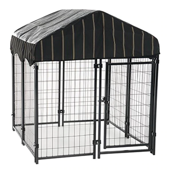 FeaturesLucky dog 52 in. X 4 ft. X 4 ft. Pet resortQuick to set up & useGreat for basementDeck or patio or on the goWater proof cover helps to protect your pet from the elementsLockable latch keeps pet secure100% steel has a black powder coat finishAlong with the striped cover valance. includedFits well into virtually any surroundingsAlways anchor your resort appropriately to keep pet safeNo tools are required for assembly.Dimension – 39 l x 24.25 w x 7 h in.Item weight – 56 lbs.