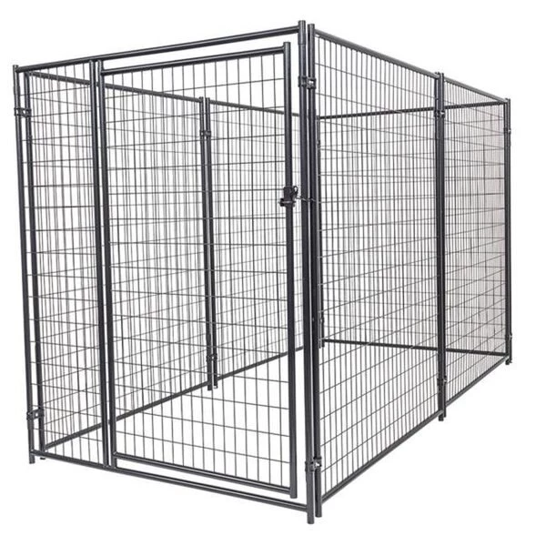 Lucky Dog Professional Modular Kennels have pre-assembled panels making set-up quick and easy for consumers. The modular design provides extra versatility for customization. Provide your pet and companion with plenty of exercise space in a welded wire modular kennel system. Simply stand panels upright in desired configuration and bolt together for support. 2 in. x 4 in. (mesh size) 8-gauge welded wire is attached directly to the 100% commercial grade steel frame with a drill and weld method;; there are no bands. ties. or bolts required for the mesh. Square corner design and dog safe lockable latch further safeguards your pet from injury. 1 in. legs on each panel allow kennel installations to be easily cleaned. Two clamps w/ nuts and bolts per panel are supplied for connecting panels together. Exposed tubing on top of kennel are equipped with pipe plugs. Built in hinge system makes gates and animals secure. Panels ship by common carrier (large truck). Lucky Dog line of modular kennel panels and gates delivers the highest quality performance and versatility of any kennel panel program on the market. This kennel has a commercial grade steel frame. welded wire mesh and a round tube design.Features:100% Commercial grade Steel1 in. extended legs for easy cleaningHardware included to secure the panels8 gauge heavy duty 2×4 welded wire meshCenter weld process eliminates sharp edgesAfter weld two step powder coating processOnly screwdriver and adjustable wrench needed for assemblyModular. square-tube panels offer greater stability and design flexibilitySilver Powder CoatedDimension – 6 H x 5 W x 10 L ft.