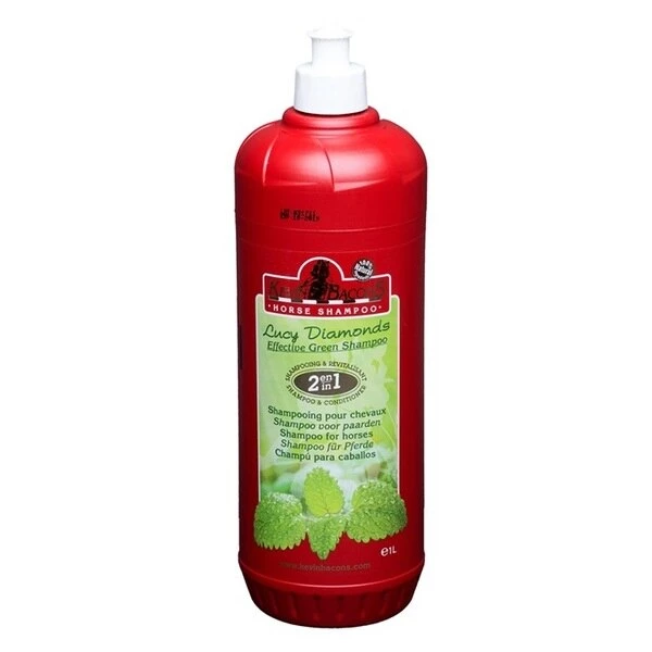Kevin Bacon's Lucy Diamonds is a skin-softening protective shampoo for horses with sensitive skins. Kevin Bacon's Lucy Diamonds cleans the skin, coat, mane and tail in depth. It removes all filth and the most ingrained yellow stains, dead skin, and dandruff, even with cold water.Its unique formula protects against the foul smells that can be caused by micro-organisms.Mint oil, eucalyptus oil, and Margosa extract give Kevin Bacon's Lucy Diamonds shampoo its stress-relieving, toning, decongestant, and antiseptic properties. The shampoo's refreshing fragrance helps to combat stress and fatigue. It thus stimulates and revitalises the horse's body, but also decongests and calms the pain and itching of insect bites and stings.Kevin Bacon's Lucy Diamonds gives your horse a silky, shiny coat, makes untangling the mane and tail easier, and helps to repel flies as the coat dries.