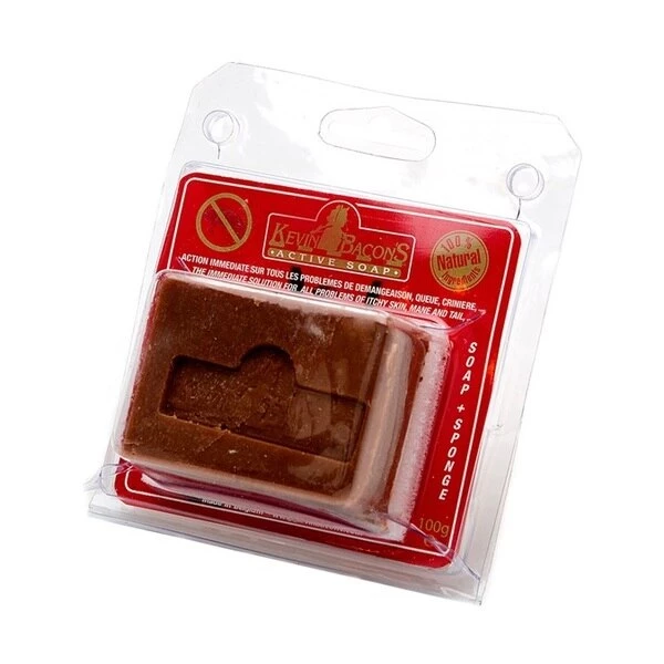 Kevin Bacon's Active Soap is a specialised soap for dermatological use on humans, horses, dogs, cats, and other animals. This soap may also be used on humans. It is made from 100% cold-pressed vegetable oils. All of the ingredients used to make Active Soap are of the highest quality.Active Soap combats all types of itching caused by culicoides (bitingmidges or no-see-ums), chiggers, horse flies, house flies, mange(microscopic mites), ringworm (highly contagious fungi), strongyles (larvae that infest the gut), and cattle grubs (white worms that are larvae of large flies).What is more, Active Soap protects, fortifies, and adds lustre to the coat, mane, and tail, which it helps to make tangle-free. It keeps the skin clean and healthy, soft, supple, and elastic.