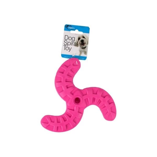 Spiral your dog world with its favorite new toy. This Dukes Dog Spiral Toy is perfect for your best pal to play while providing hours of entertainment with its flexible material. It comes in hot pink. blue. and lime green. The texture toy measures 7 in diameter with a hanging tag 3.15 x 2.33 in size. FeaturesDog Spiral ToySet of 18SpecificationsColor: Pink. blue & Lime GreenSize: 7 in.Weight: 5 lbs