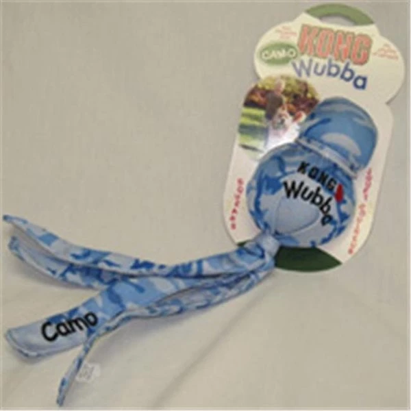 Kong wubba is a fun interactive toss and tug toy.Durable reinforced nylon fabric covers two rubber balls – a tennis ball on top and a squeaker ball beneath.The long tails make it easy to pick up and throw.Dogs love to squeak the wubba and shake the flapping tails back and forth.Comes in an assortment of pink blue and green camo.Size: Extra Large.
