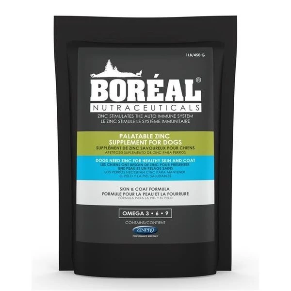 To have a pet at the home requires a lot of passion. care and love. Our Pet Supplies items consist of high quality selection of pets daily needs and everything concerning for your beloved furry pals. FeaturesBoreal Zinc Supplement Powder for DogsFor dogs that are having scratching. irritated skin problems due to known or unknown causesContains Zinc Methionine. a patented. highly bioavailable Zinc compoundExclusive formula enhances palatabilityFor dogs having a Zinc deficiencyChronic hair loss. dull coats. dry flaky skin & itchy conditions. poor quality footpads & nails. hot spots. rashes. etcCauses no side effects and is non-toxicEnriched with Omega 3 & 625 mg of Zinc per tspSpecificationsCapacity: 1 lbs