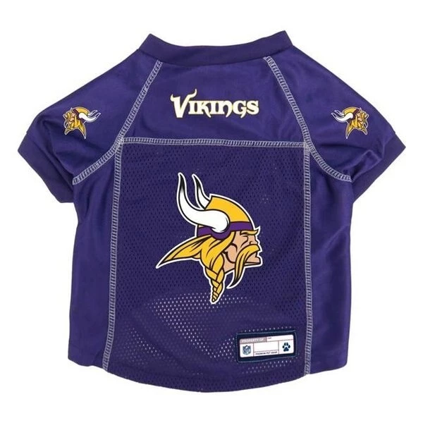 We are very pride to provide the NCAA. NFL. NCAA. MLS. NBA. MLB products and its accessories. Our products are assured for reliability and durability which has high quality and standard. Our products are designed with the up to date designs and creativity. We always work towards to fulfill the requirements of our end users.FeaturesThe pet jersey features full color team graphics on the back and sleeves and an NFL shield on the frontWoven NFL shieldDazzle V-neck collarFull color team logo and sleeve decorationWoven jock tag and locker tagSpecificationsTeam: Minnesota VikingsLeague: NFLSize: Large