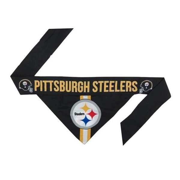 We are very pride to provide the NCAA. NFL. NCAA. MLS. NBA. MLB products and its accessories. Our products are assured for reliability and durability which has high quality and standard. Our products are designed with the up to date designs and creativity. We always work towards to fulfill the requirements of our end users.FeaturesYour dog will put his best paw forward with our soft poly blend bandannasOur reversible design features a stylish paisley print on one side and a large team logo on the reverse sideA soft. washable poly blendReversible team graphicsA five sizes to fit chihuahuas to chowsSpecificationsTeam: Pittsburgh SteelersLeague: NFLSize: Large