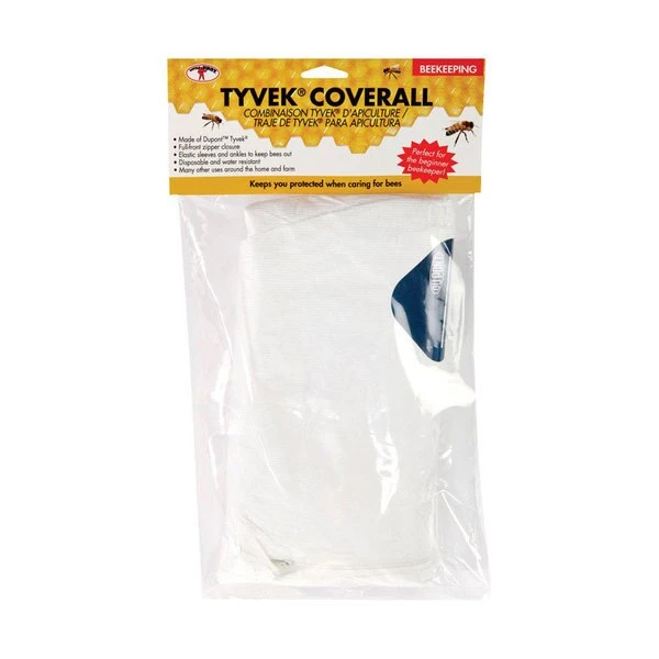 The Little Giant beekeeping Tyvek coverall with a full-front zipper closure will keep you protected while caring for your bees. Elastic closures at both the sleeves and ankles will keep out bees. This easy-to-wear suit is water-resistant and disposable. You're sure to find many uses around your home and farm for this coverall.