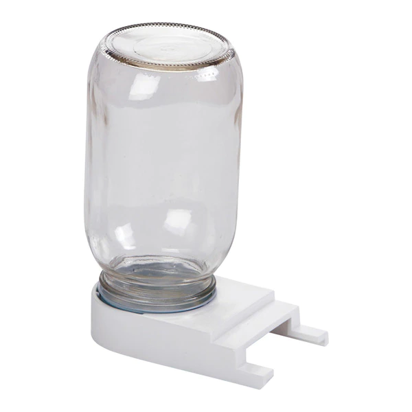 The Little Giant beehive entrance feeder is an easy-to-use plastic feeder that will fit directly into the front entrance of your hive. Designed to fit into the large opening of the entrance reducer on our Little Giant 10 frame complete hive the feeder allows space for the bees to come and go while nourishing them with a simple syrup when natural food sources are scarce. The base is made of high-impact plastic and the clear glass jar allows you to see the feed levels without disturbing the bees. Holds approximately 1 quart.