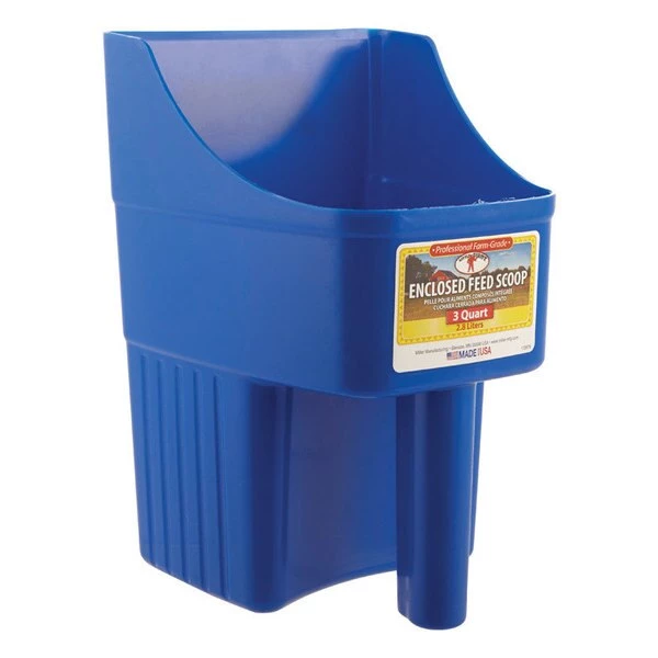 The best all-around scoop you will ever use. Enclosed design reduces spillage and measuring is easy with built-in graduation marks which are perfect for feed