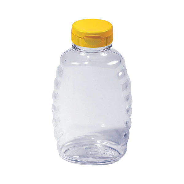 This clear bottle made of BPA-free PETE plastic will really show off your honey. Space is provided on the bottle for Little Giant honey labels. Yellow flip-top lids with built-in freshness and safety seal are included. Holds 16 Oz. (1 lbs.) of honey.