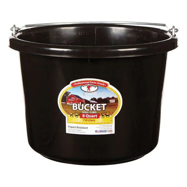 Practical and affordable Little Giant plastic buckets are favorites on farms ranches and worksites everywhere. This buckets are made from polyethylene resin that is impact resistant protects against warpage and helps prevent stress cracks. This handy little round bucket features a heavy-duty wire bail. 11.5 inch diameter by 8.5 inch high holds 8 quart (2 gallon).