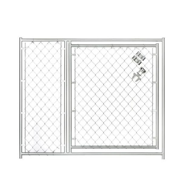 Chain Link Modular Gate Lucky Dog Modular Panels are pre-fabricated. making set-up quick and easy. The modular design provides extra versatility for customizing your layout. Provide your pet and companion with plenty of exercise space using our panels & gates. Simply stand panels upright in desired configuration and bolt together. Chain Link fabric is directly attached to the 100% commercial grade tubular steel frame. Our panel frames are fully welded. no loose parts. Square corner design further safeguards your pet from injury. 1" legs on each panel allow kennel installations to be easily cleaned. Two clamps with nuts and bolts per panel are supplied for connecting panels together. Exposed tubing on top of kennel are equipped with pipe plugs.Features100% Commercial Grade Steel1" Extended Legs for easy cleaning2 Panel Clamps includedGalvanized Chain Link. all Steel Wire Ties no Soft Aluminum partsDurable Steel. 2 Step Powder Coated Frame12 Gauge Chain Link FabricOptional Self Tapping screw hole provided in Latch BodyLockable. Steel Door LatchModular. Square Corner Tube Frame Panels offer great stability and design flexibilitySilver Powder Coated frameSpecificationsSize: 4 x 5 ft.