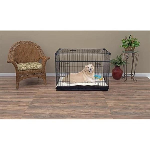 The Lucky Dog Whisper Glide Crate will keep your pet safe & secure while at home. traveling. training or anywhere else your pet may go! This pet crate features our Patented Sliding Door System which gives your pet easy. instant access to their home. saves space. shins and knees since there is no door sticking out into the room. Built with sturdy wire construction with rust-resistant e-coating for durability. includes Patented Corner Stabilizers to help prevent accidental collapse and reduces rattling. Ready to use – sets up and folds down in seconds. This is the perfect Sliding-Door Wire Training Crate or kennel for any dog or puppy. Be prepared for more dog kisses as your pet will love you for getting a safe. convenient. and perfectly sized home. About Lucky Dog: Our motto is. Every home deserves a good dog and every dog deserves a good home. We keep that idea in mind with every Lucky Dog product we create. Our line of Lucky Dog Kennels and accessories is everything you need to keep your dog happy and safe while you are away. Your pets safety is at the forefront of all product development and construction. and we are moving towards using more environmentally responsible processes in our production. We are proud to have served families and their pets with the Lucky Dog pet brand for over twenty-five years and look forward too many more years serving the needs of pets across the country. Features2nd Side Door AccessPatented Corner StabilizersRemovable TrayRubber FeetCarrying HandleSliding Door System provides safety and ease of use for you and your petCorner Stabilizers for easy assembly and No rattlingSpecificationsSize: LargeLength: 42 in.Weight: 34.84 lbs