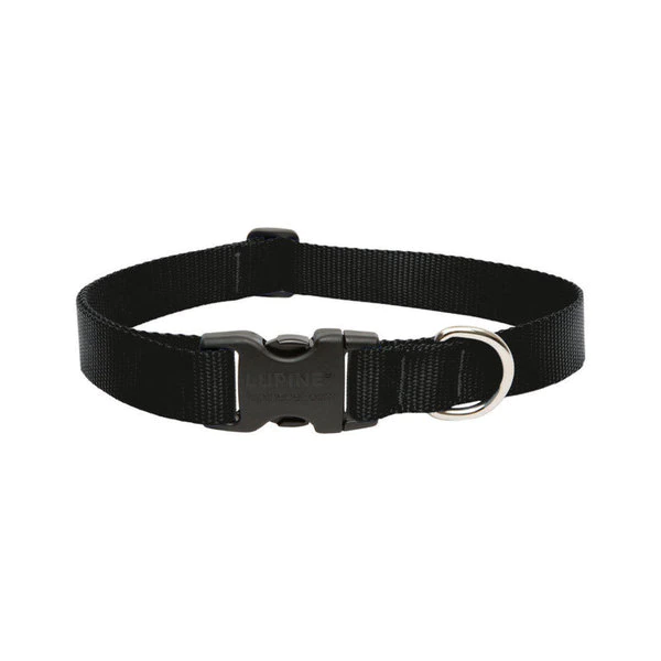 1 inch wide 16-28 inch adjustable dog collar is perfect for large & extra-large dogs. Made from premium woven nylon and featuring custom designed side release buckle with a welded D-ring to attach tags. Don't forget the matching leash! Not recommended for tie-out.