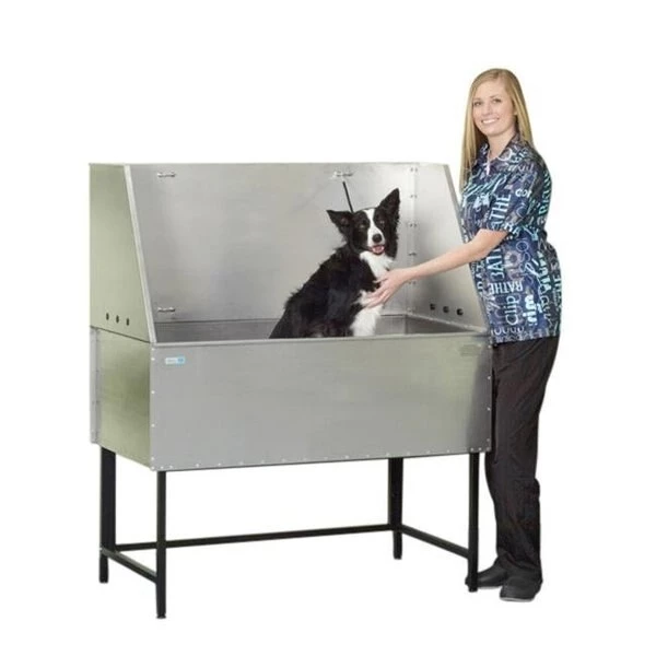 Made of 304-type stainless steel that won’t bend under pressure. our premium Master Equipment Everyday Pro Deluxe Tub is built to last. Additional rivets along the bottom of the tub provide extra support for bathing heavy pets. The mold resistant silicon caulking provides a long-lasting. watertight seal. Each tub features.New & improved tub design offers incredible value.Stronger stainless steel.Additional rivets.High-quality silicon for long lasting use.Three 1 in..diameter plumbing holes (fit for 4 or 8 in. faucet hookups).Predrilled 3 1/4 in. drain hole.Four u-shaped backsplash bolts.Size- 48 L x 24 1/2 W x 56 H in.Material – 16-gauge & 19-gauge. 304-type stainless steel .Each tub features-Three 1 in..diameter plumbing holes.A predrilled 3 1/4 in. drain hole.Four u-shaped backsplash bolts.High-quality silicon for long lasting use.