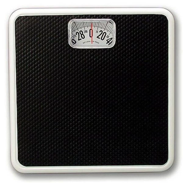 FeaturesAnalog Bathroom ScaleThe sleek metallic finish and attractive. unobtrusive shape make it a fineComfort grip platform and an easy-to-read rotating dialThe sleek metallic finish and attractive. unobtrusive shape make it a fineSpecificationsColor: BlackWeight: 3.038 lbs