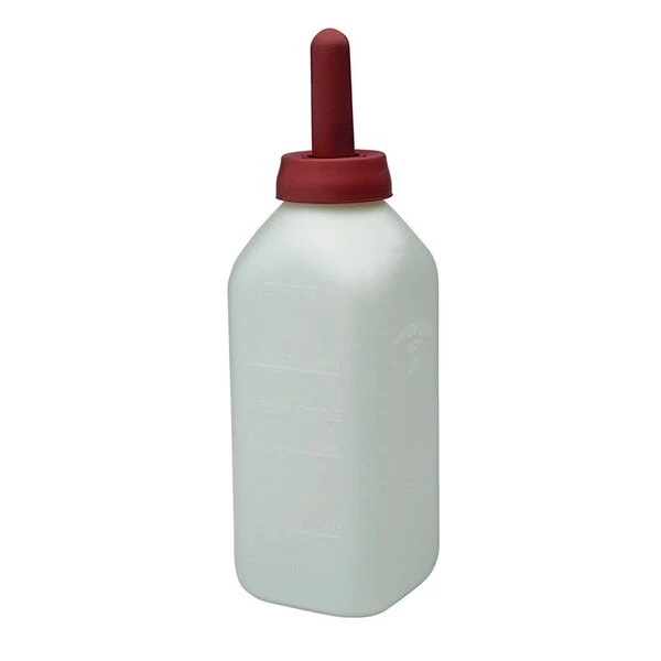 Bottle is sturdy and sanitary made of FDA-approved food-grade polyethylene plastic that is durable yet translucent enough so you can see the content level. Nipple is made with a special rubber formula to prolong nipple life and improve pliability. Handy snap-on top. Bottle is 4.25 inch square by 10 inch high holds 2 quart. Nipple is 1 inch diameter by 4 inch long.