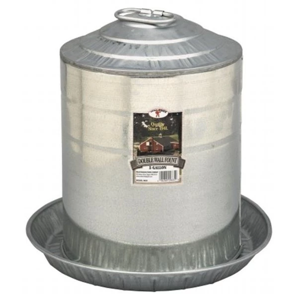 Functional double wall waterers are manufactured from heavy gauge steel Edges are rolled for safety and feature arched inner handles for added strength Brass valves and rubber seals produce a positive water shut off Seams are constructed and tested to prevent leaks Features a locking pin For poultry and game birds 5 gallon capacity Length: 15.25Width: 15.25Height: 15.25