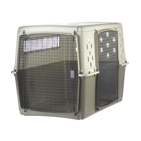 Twice as nice! The pet lodge double door portable pet crate includes a second door for added flexibility in use and transport. Featuring updated styling and features designed to meet the requirements of the IATA for travel. Easy to assemble design includes durable wire doors and vents and rugged construction, which is strong enough to withstand the rigors of travel and regular use.Easy to carry, two large doors plus wire window and vented back, two-tone beige and taupe with E-coated black wire. Small – Up to 30 lbs. L 28" x W 20" x H 19"Medium – Up to 50 lbs. L 33" x W 22" x H 23"Large – Up to 70 lbs. L 37" x W 24" x H 26"Xlarge – Up to 100 lbs. L 41" x W 27" x H 30"Giant – Up to 130 lbs. L 49" x W 32" x H 35"