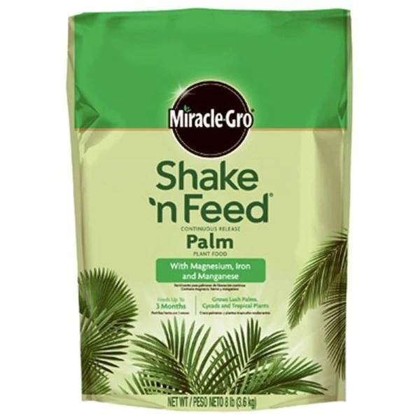 FeaturesCapacity – 8 lb.8-8-8. Shake 'N Feed Palm Food.Contains Magnesium.Iron & Magnesium To Help Prevent Fronds From Yellowing & Curling.Feeds Continuously For Up To 3 Months.Dimension – 4.25 x 7 x 13.5 in.Item Weight – 8.8 lbs.