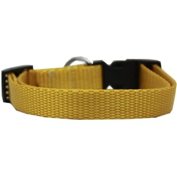 We are a small. family-owned American workshop/factory that produces nearly 100.000 original products – fun pet apparel. strong dog and cat collars. cute pet toys. and more for everyone's favorite family members. FeaturesPlain Nylon Dog CollarHigh qualtiy webbing made to military standards with heavy duty hardwareMade in the USASpecificationsColor: Golden YellowSize: Small