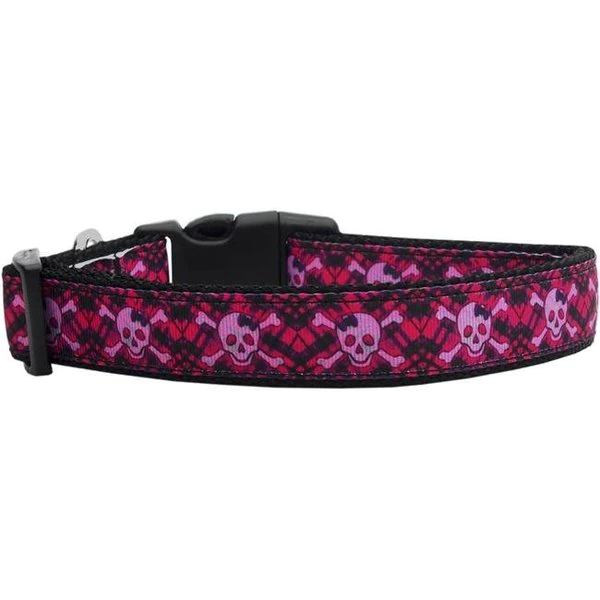 We are a small. family-owned american workshop/factory that produces nearly 100.000 original products – fun pet apparel. strong dog and cat collars. cute pet toys. and more for everyone's favorite family members. FeaturesHot Pink Plaid Skulls Nylon Dog CollarSupplying high quality. economical products for dogs and cats toIt is adjustable to fit a neck sizeMade in USASpecificationsColor: Hot Pink PlaidMaterial: NylonSize: Small