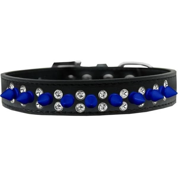 Double Crystal and Blue Spikes Dog Collar We are a small. family-owned American workshop & factory that produces nearly 100.000 original products – fun pet apparel. strong dog and cat collars. cute pet toys. and more for everyone's favorite family members.SpecificationsColor: BlackSize: Size 20