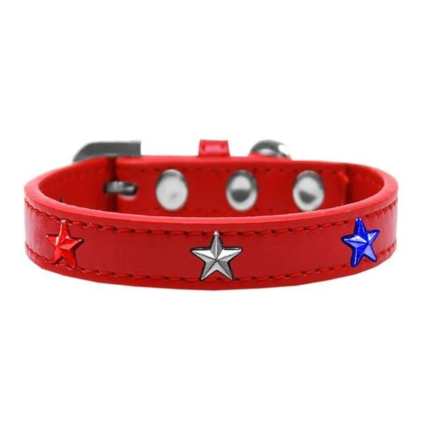 We are a small. family-owned American workshop/factory that produces nearly 100.000 original products – fun pet apparel. strong dog and cat collars. cute pet toys. and more for everyone's favorite family members. FeaturesRed. White and Blue Stars Widget Dog CollarItems for all types of petsQuality selection for everyday pet needsAssured hygiene and care for petsSpecificationsColor: RedSize: Size 18