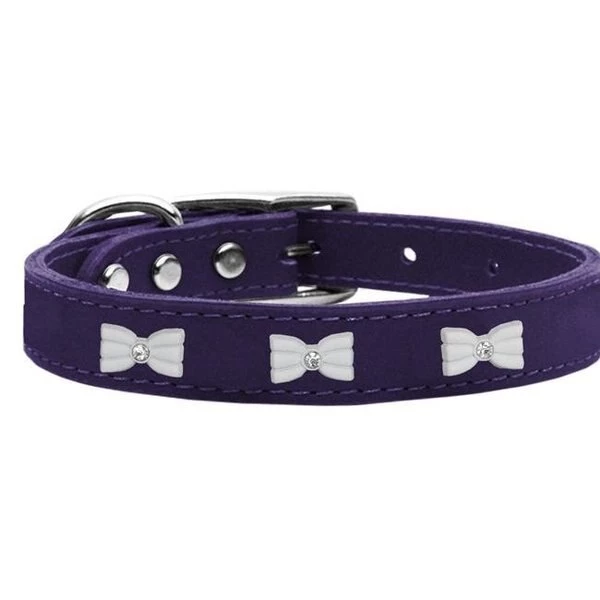 We are a small. family-owned American workshop & factory that produces nearly 100.000 original products – fun pet apparel. strong dog and cat collars. cute pet toys. and more for everyone's favorite family members. FeaturesWhite Bow Widget Genuine Leather Dog CollarGenuine leather collar adorned with durable widget charmsMade in the USASpecificationsColor: PurpleSize: Size 22