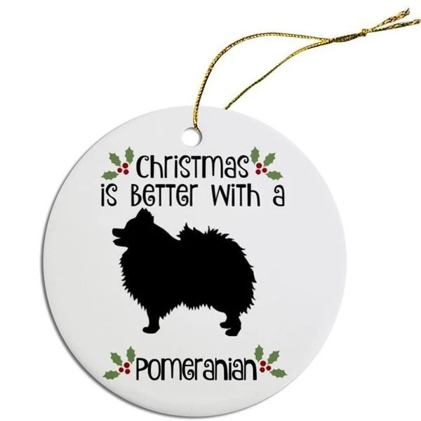 Mirage Pet Products offers a wide range of wholesale pet supplies including leather dog collars. rhinestone dog collars. leashes. charms. shirts. apparel. magnets. signs and harnesses. FeaturesSmile with funny. cute. or expressive artworkThis lightweight hanging ornament is made of high quality porcelainSpecificationsBreed: PomeranianShape: Round