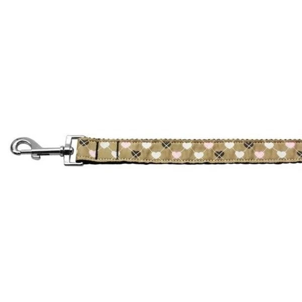 Argyle Hearts Nylon Ribbon Leash Tan 1 inch wide 4ft LongProduct Summary : New Pet Products/Argyle Hearts Nylon Ribbon Collars@Dog Collars and Leashes/Nylon Dog Collars/Argyle Hearts Nylon Ribbon Collars