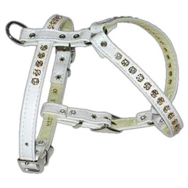 Gorgeous faux leather harness with crystal accents.Product Summary : Pet Harnesses/Comfort Harness