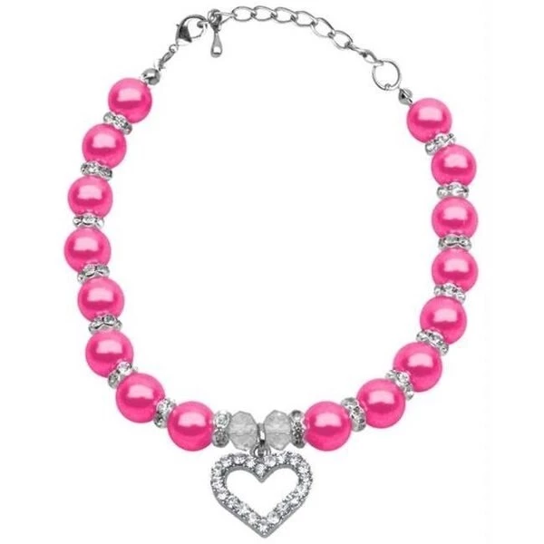 The Pearl and Crystal Necklaces are white faux pearls individually separated by a ring of crystals inlaid in a silver toned band. With a jewelry clasp for closure. these necklaces are the perfect combination of dainty fashion!Product Summary : New Pet Products/Heart and Pearl Necklaces@Pet Jewelry /Heart and Pearl Necklaces