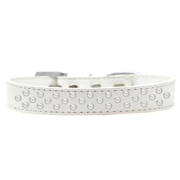 Mirage pet products is unique in offering a versatile range of products for your pet animals. The product line comprises of Dog Collars. Dog Leash. Dog treat and Clothing. Different patterns and attractive colors made us stand apart. Our skilled craftsman uses top notch raw materials to increase strength and durability of the goods. Mirage makes your pet more comfortable.3/4 in. wide collar adorned with 2 sprinkled rows of rhinestones and a rhinestone buckle. SpecificationsDesign: SprinklesMaterial: PearlsColor: WhiteSize: 16Weight: 1 lbs