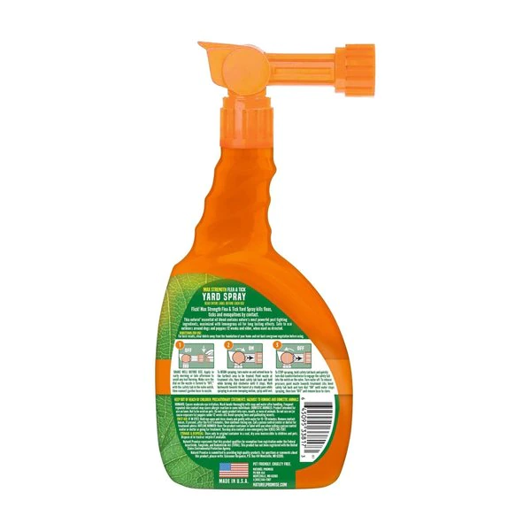 Flick! Max Strength Flea & Tick Yard Spray is an effective flea & tick treatment made with natural ingredients you can trust. The Max Strength Flea & Tick Yard Spray covers up to 5 000 sq. ft and kills fleas ticks mosquitoes spiders and more by contact guaranteed. The natural blend contains nature's most powerful pest fighting ingredients maximized with lemongrass and sesame oi for long-lasting effects. Safe for use around dogs.