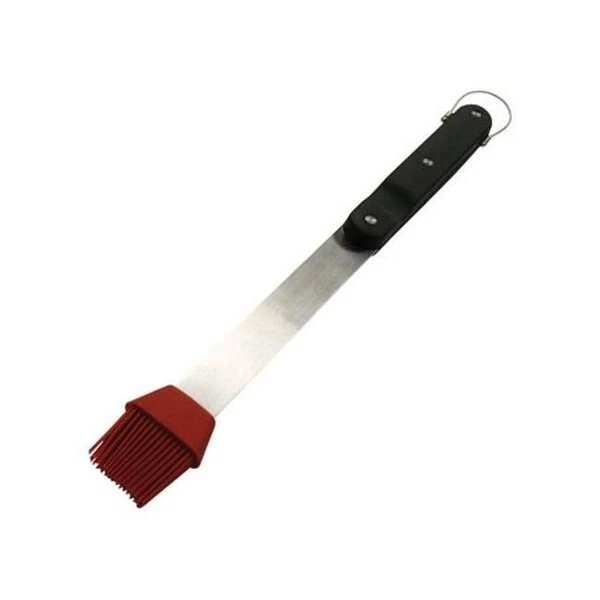 FeaturesBasting BrushStainless steelOver-sized basting brush with soft rubber gripSilicone brush head is heat resistant to 500 degrees FCurved shaft to keep the bristles off the shelfCable hanging loopsSpecificationsDimension: 16.25" H x 1.5" W x 1.25" LWeight: 0.6 lbs