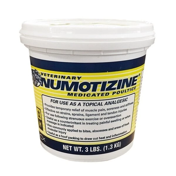 Numotizine is a medicated poultice that delivers relief of muscle pain, swelling, soreness and stiffness. Effective on strains, sprains, ligament and tendon injuries. Beneficial as a hoof packing to draw out heat and inflammation. Also commonly applied to bites, abscesses and areas of muscular injury.