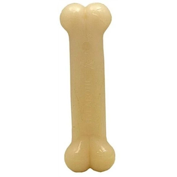 Made with tough durable nylon this durable toy was designed for your powerful chewer to enjoy. It provides long-lasting entertainment satisfies your dog's natural urge to chew and encourages positive chewing habits. Plus the bristles raised during chewing promote clean teeth and help control plaque and tartar buildup. Go ahead and give your dog a Nylabone! Made in the USA!