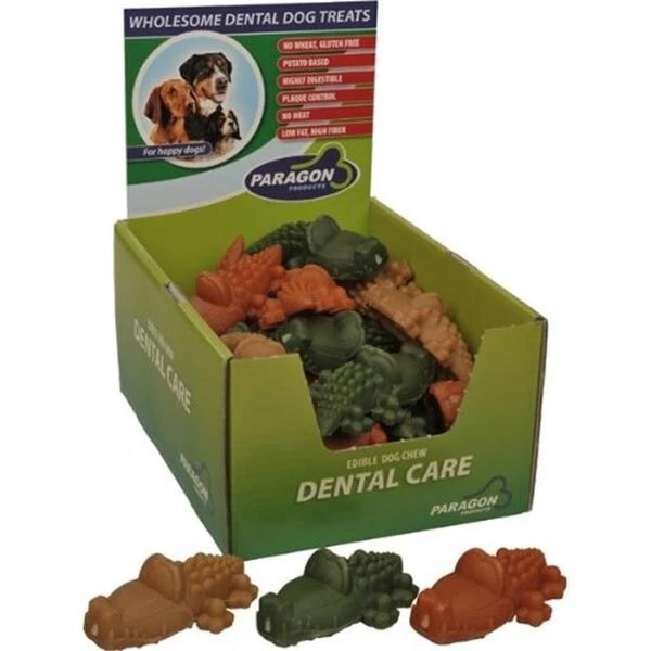 Whimzees alligator dog treat is help to promote good dental care. Naturally vegetable-based and containing no chemical additives. Designed to help clean the teeth and freshen the breath by encouraging dogs to indulge in their natural instinct to chew. Edible dental chews tend to work quite well for dogs that have common food allergies. They are also a lower fat alternative for dogs that need help to maintain a healthy weight. This treat features no wheat. gluten free. potato based. highly digestible. plaque control. no meet. low fat and high fiber. Ingredients are potato starch. glycerin. powdered cellulose. lecithin. brewers dried yeast. titanium dioxide (color). chlorophyll. calcium carbonate. annatto and malt extract. Directions for use: no more than one treat per day is recommended. Always have fresh water available for your dog and supervise your dog while it is chewing.Pack of 36Size – Large