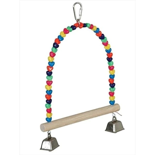 has been leading the way in pet product innovation by offering pet owners a wide range of high-quality. affordable pet products for more than two decades. by focusing on product design. value. and quality product line. is proud to be creating innovations in pet care for a better way of life.Small swing is adorned with colorful acrylic hearts.Birds enjoy the rhythmic swinging and soft bell sounds.Dimensions: 9"L x 5/8"Dia x 7"W.