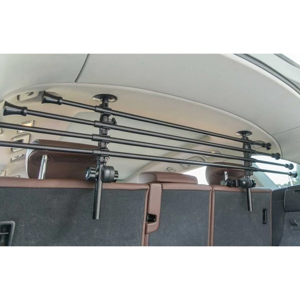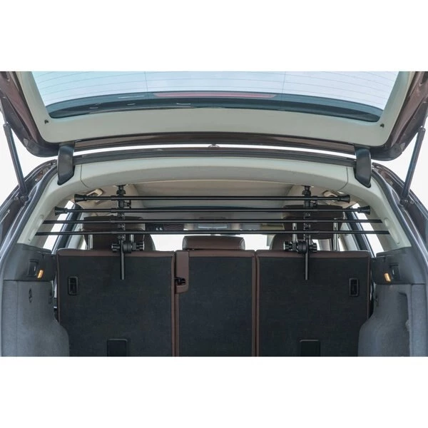 Keep everyone safe in the car with this universal car metal pet barrier. Durable metal slats makes it strong enough to keep pets safely secluded so they don't shed hair, leaves any scratched or muddy paws. Adjusts to a minimum height of 28.5 to a maximum of 48.5'' and minimum width of 32.75 to maximum 59, can also be easily removed and stored when not in use. Big enough for any pet, compact enough for any car.