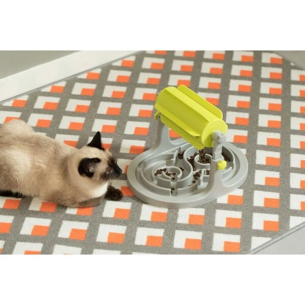 Ensure a constant supply of dog food or cat food to keep your pet comfortably full with this IQ feeder. Interactive IQ toy provides your pet with a challenge that is fun and brain stimulating. Height adjustment knob makes it suitable for different sized pets to comfortably eat and play. Composed out of durable plastic, anti skid design at the bottom so it won't tip over when your pet is eating. Slow feeder dish will encourage your pet to eat at a slower pace. Your kittens and pups will love this IQ puzzle feeder!