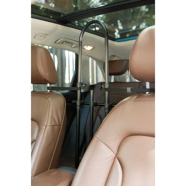 Keep everyone safe in the car with this universal car metal pet barrier. Durable metal slats makes it strong enough to keep pets safely secluded so they don't shed hair, leaves any scratched or muddy paws. This front seat pet barrier easily straps onto the seat headrest and stays securely fastened, can be adjusted to desired height, and easily removed when not in use. Big enough for any pet, compact enough for any car.