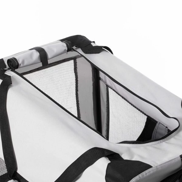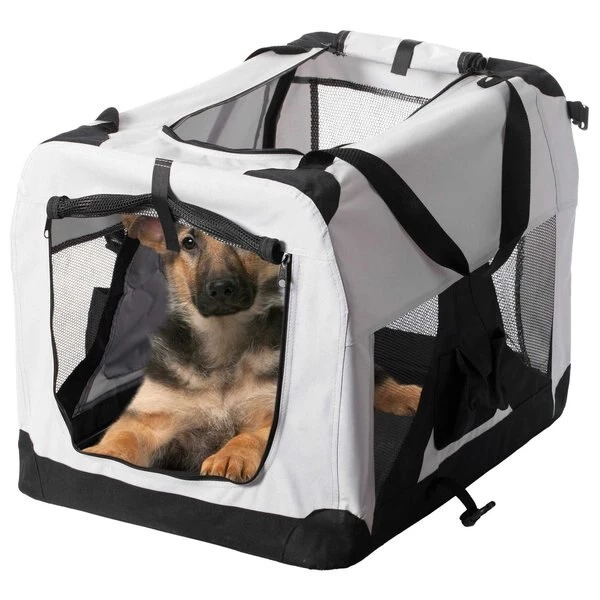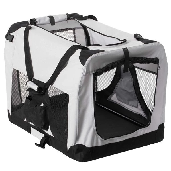 With the PawsMark Foldable Pet Carrier, pet transport can be safe, comfy, and stylish. Featuring a soft-sided composition with mesh panels, the pet bed is perfect for both cats and dogs. Its durable metal frame is just the right size for most pets and conforms to most domestic airline under-seat dimension guidelines. When not in use, the pet carrier can be easily folded down and buckled close for safe and compact storage. The mesh panels on all four sides and top provide adequate airflow ventilation, as well as easy checking on your furry pal.